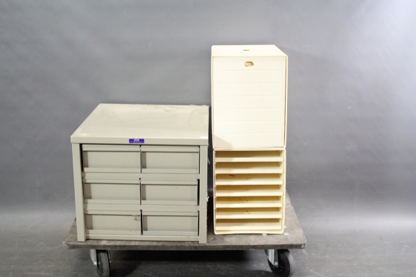 9. Arkivskåp i plåt PCA England och sortimentsfack i plast 2 st