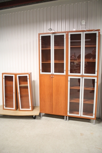 6. Bokhyllor med vitrindel och belysning 4 st