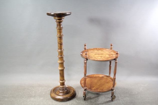 179. Bord på hjul och piedestal i svarvat trä 1900-tal
