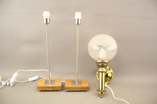 51. Bordslampor 1 par och vägglampa i glas och mässing Abo Danmark