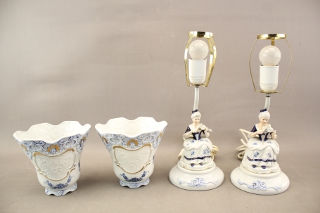 15. Bordslampor 2 st och krukor 2 st i porslin