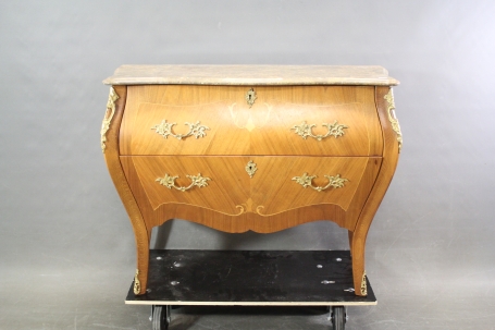 11. Byrå i rokokostil med mässingsbeslag, intarsia och stenskiva