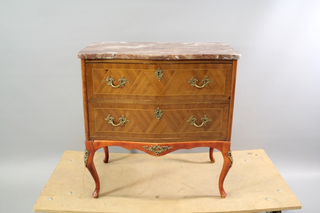 31. Byrå i rokokostil med mässingsbeslag och stenskiva