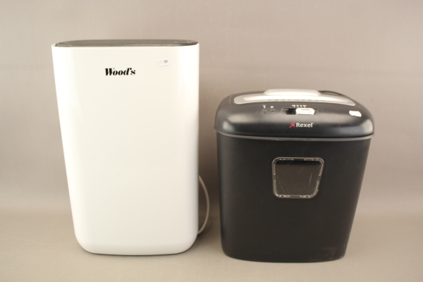 59. Dokumentförstörare Rexel och luftavfuktare Woods