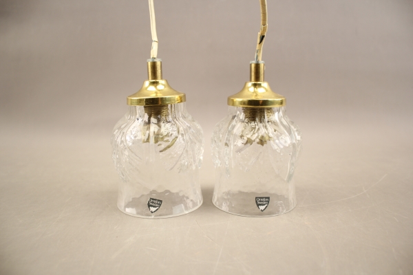 36. Fönsterlampor i glas och mässing Orrefors 2 st