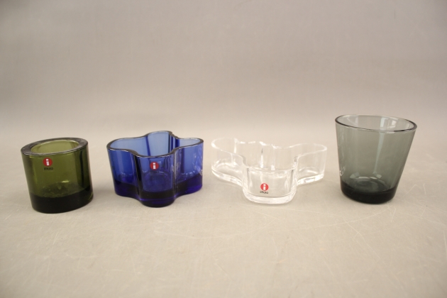 38. Glas "Kartio" Kaj Franck, skålar 2 st och ljuslykta Iittala