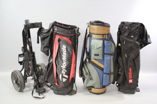 7. Golfbagar 3 st och golfvagn