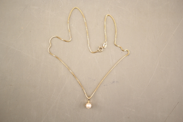 58. Halsband i förgyllt silver och hänge i guld 18k med odlad pärla