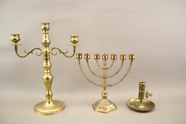 29. Kandelaber barockstil, menorastake 1900-talets andra hälft och ljusstake i mässing