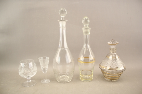 31. Karaffer 3 st, konjakskupor 4 st och snapsglas 7 st