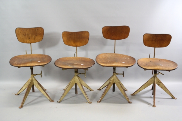 43. Kontorsstol/verkstadstolar i trä och metall 4 st 1930/40-tal