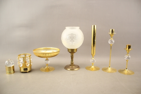 36. Ljuslyktor 2 st, ljusstakar 2 st, vas mm i mässing bla Lövsjö