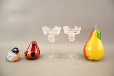 47. Ljusstakar i kristall Åfors 1 par och glaskonst Reijmyre, mm