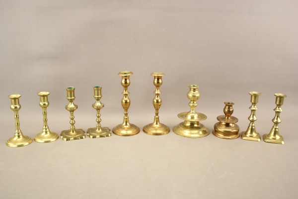 59. Ljusstakar i mässing 10 st bla Malm 1800/1900-tal