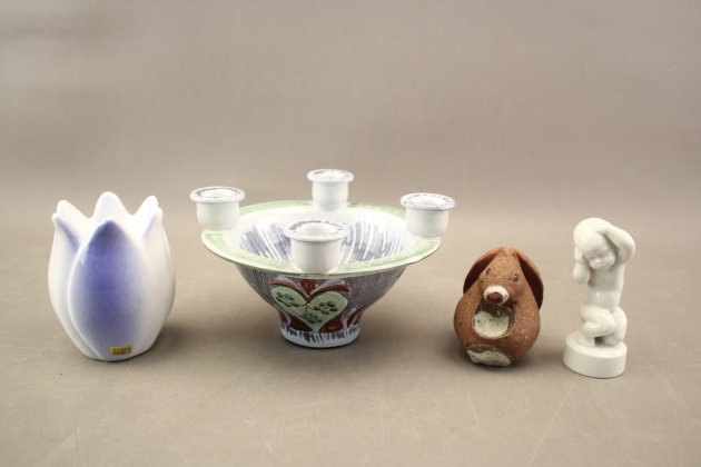 33. Ljusstake, ljuslykta Rolf Berg och figuriner 2 st bla "Pinebarn" Svend Lindhart B&G