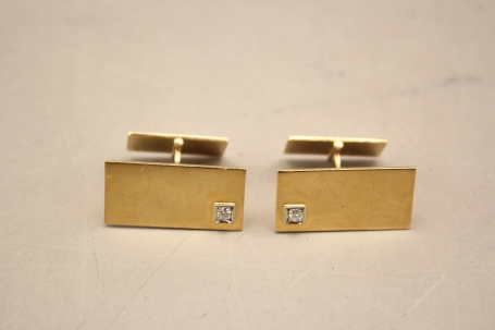 40. Manschettknappar i guld 18 k med 2 vita stenar
