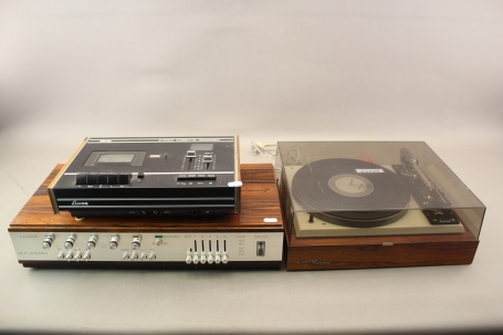 48. Musikanläggning i teak "Luxor" 3 delar och högtalare 1 par