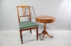 39. Pelarbord på hjul med lådor i engelsk stil och stol 1900-tal