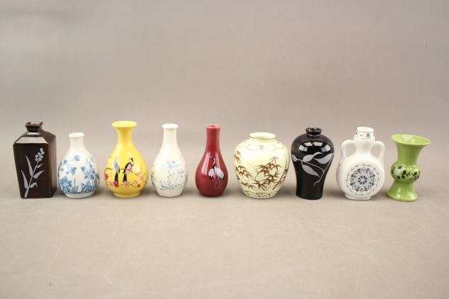 3. Samling miniatyrvaser med asiatiskt motiv 9 st