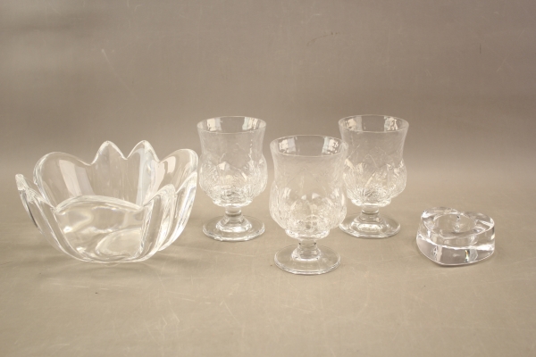 11. Skål "Dala" och glas "Eden" 3 st Lars Hellsten och ljuslykta Orrefors