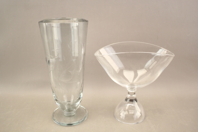 65. Skål "Fjäderskålen" Vicke Lindstrand sign Kosta LH 1659 och vas