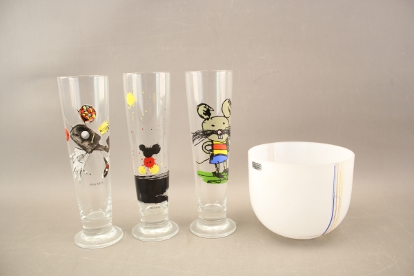 38. Skål Kosta Boda "Rainbow" sign B Vallien och ölglas Lasse Åberg 3 st