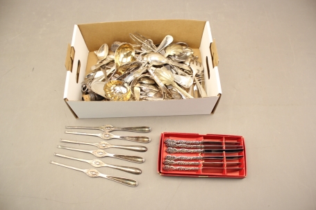 44. Skaldjursbestick 6 st och diverse bestick i nysilver