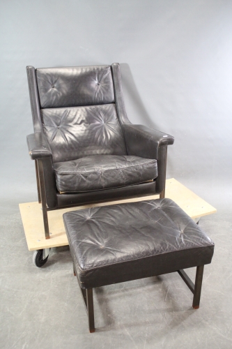 46. Skinnfåtölj med fotpall Karl-Erik Ekselius