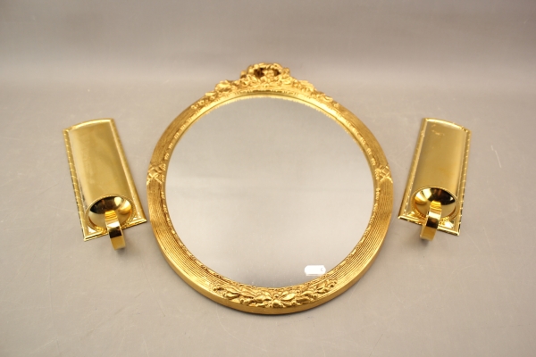 34. Spegel och ljuslampetter i mässing 1 par