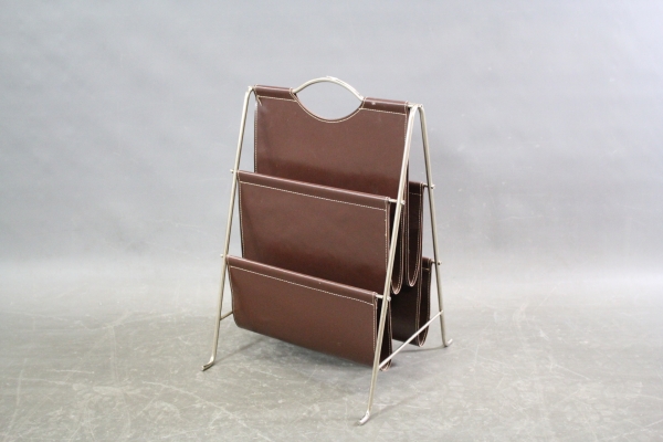 13. Tidningsställ i metall och skinn