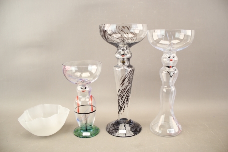 44. Vattenljusstakar Lars Sestervik Lindshammar 3 st och skål Orrefors