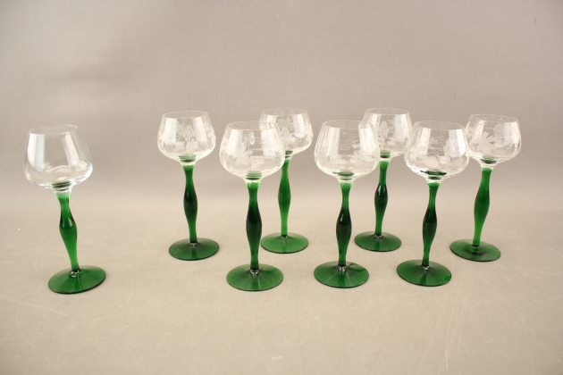 43. Vinglas med slipad dekor 8 st varav 7 st är Kosta