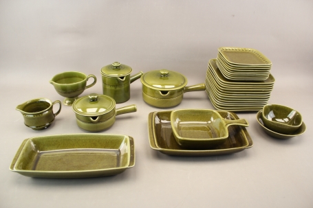 Mattallrikar 13 st, assietter 9 st, skålar 2 st, uppläggningsfat 2 st, karotter 4 st och såskannor 2 st