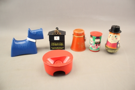 3. Sparbössor 5 st bla Stig Lindberg och askfat Gustavsberg