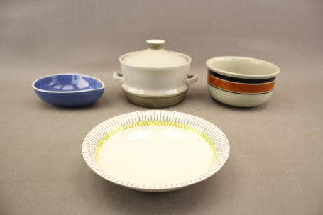 39. Skålar 2 st, djup tallrik och karott med lock bla Gefle "Pigg"
