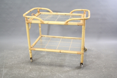 31. Serveringsvagn i glas och rotting