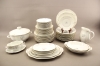Mattallrikar 12 st, halvtallrikar 11 st, assietter 12 st, djupa tallrikar 12 st, uppläggningsfat 8 st, terrin, kanna och såsskål