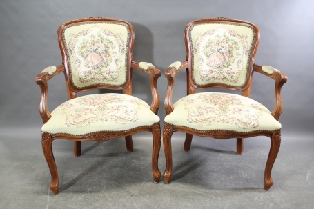 45. Karmstolar i rokokostil med broderad sits och rygg 1 par