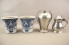 392. Krukor med asiatiskt motiv 2 st, vas och stop i tenn