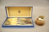 266. Skaldjursbestick i nysilver 6 delar och bordständare