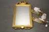 538. Spegel med guldfärgad träram och lampetter 1 par