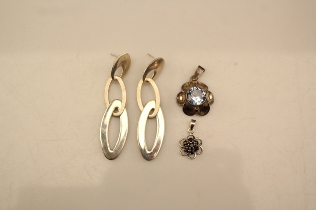 117. Örhängen 1 par och hängen 2 st i silver