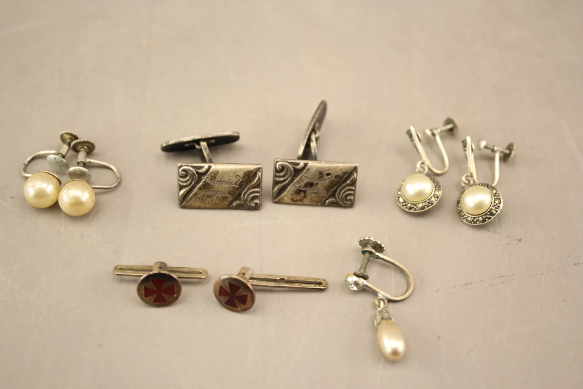 198. Örhängen 5 st, knappar 2 st och manschettknappar 1 par i silver