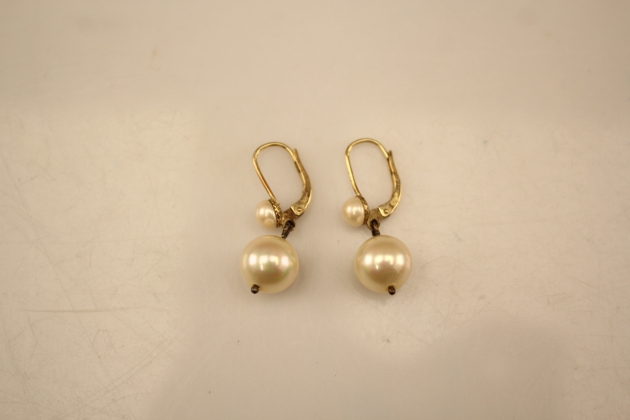 121. Örhängen i förgyllt silver med odlade pärlor 1 par