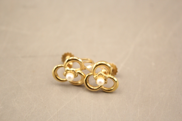 123. Örhängen i guld 18k med pärla 1 par