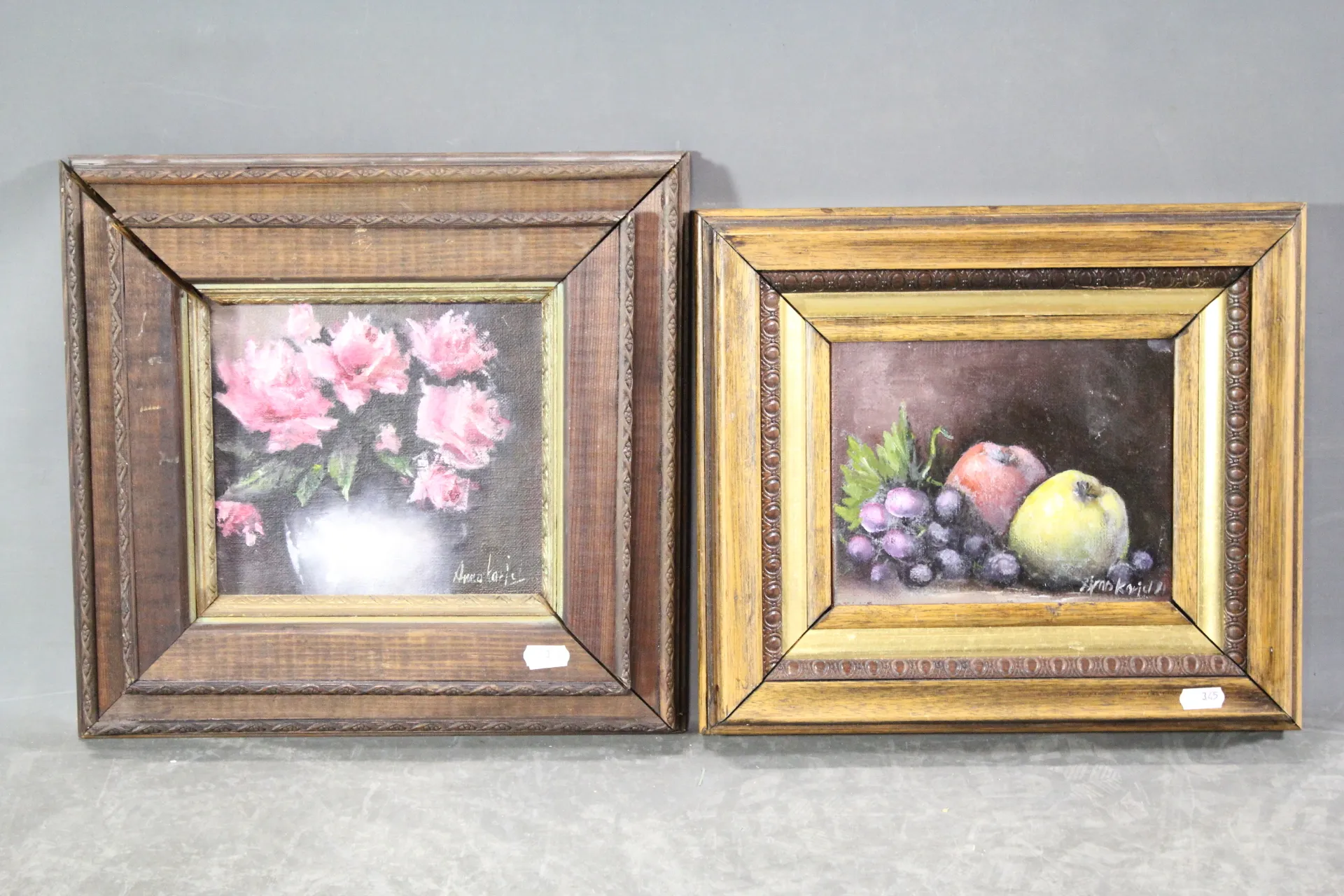 345. Tavlor olja på pannå sign Arno Karjel 2 st