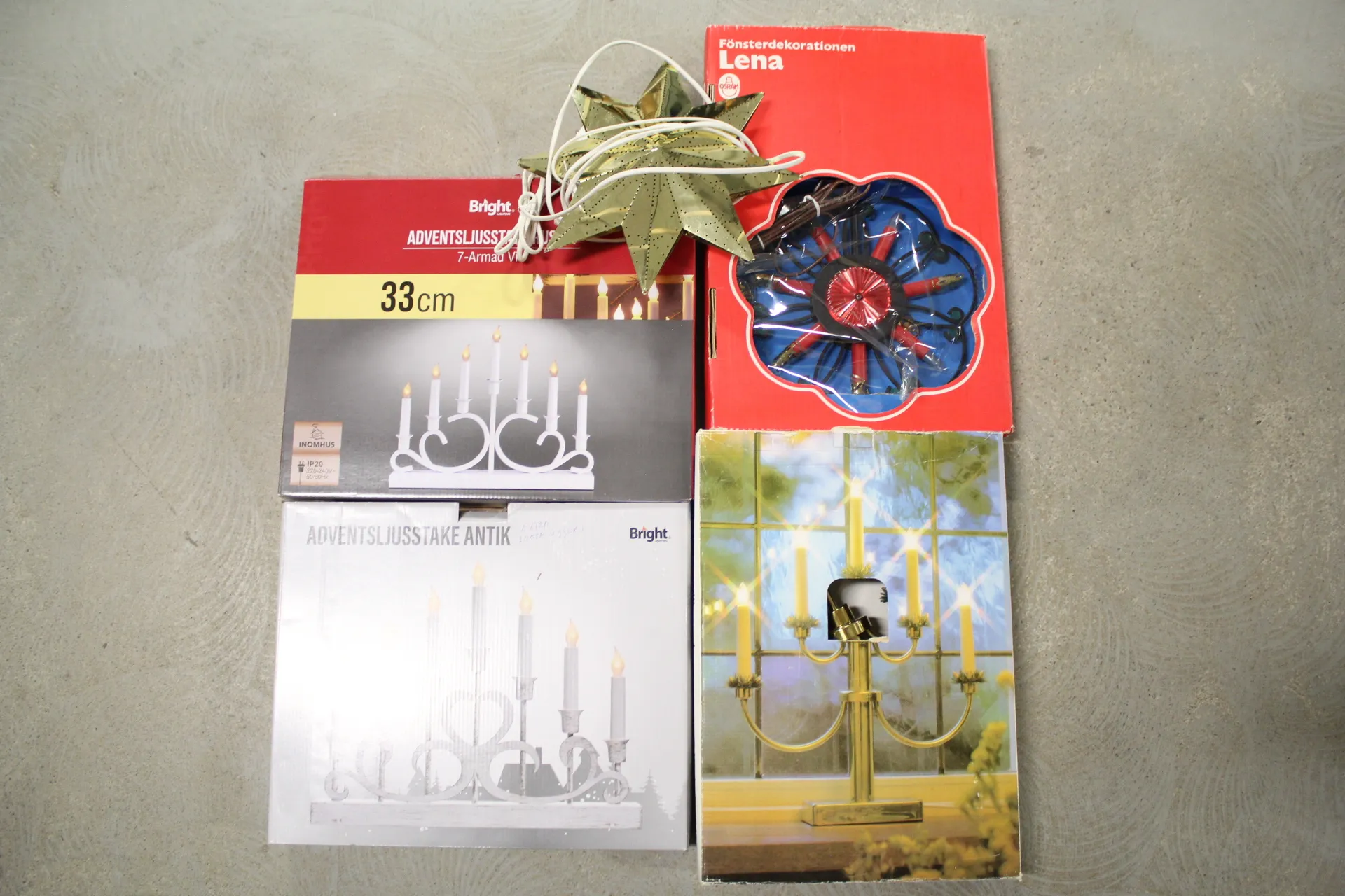 410. Adventsljusstakar 3 st och julstjärnor 2 st