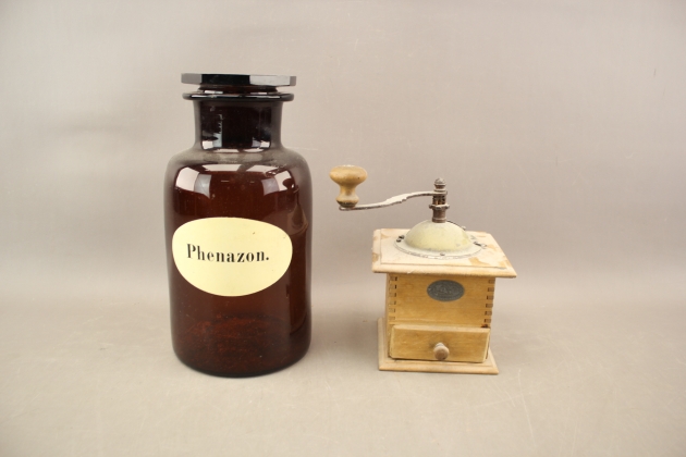 267. Apoteksflaska och kaffekvarn