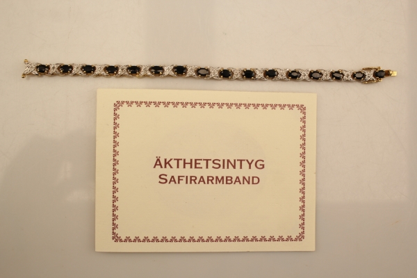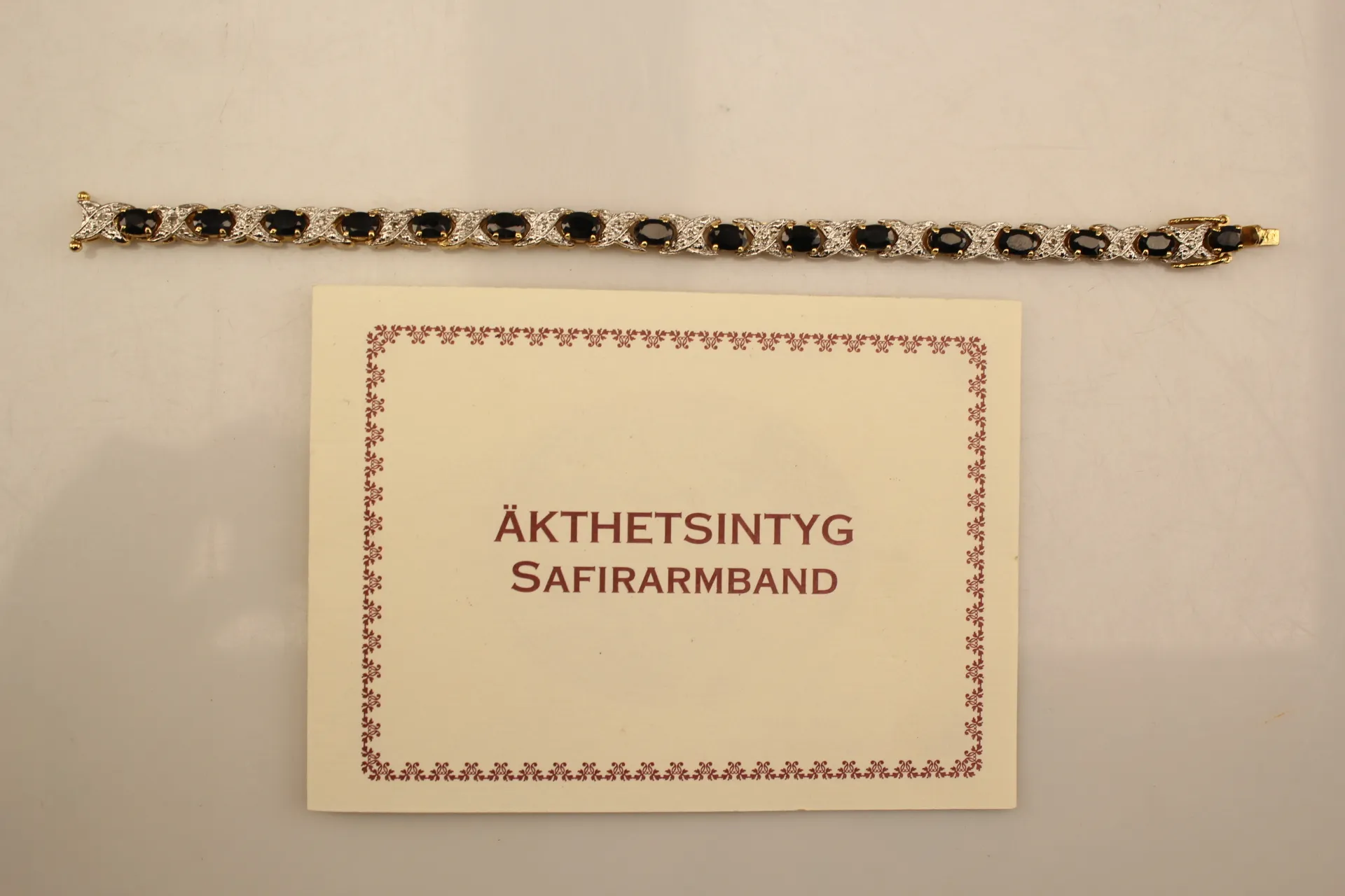 142. Armband i sterlingsilver med 16 st safirer och diamanter 0,08 ct