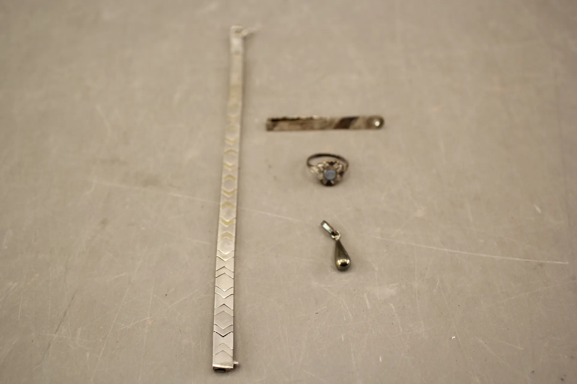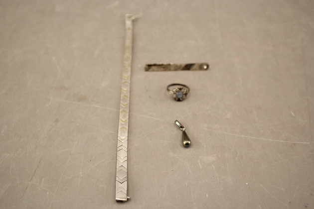 72. Armband, slipsnål, ring och hänge i silver